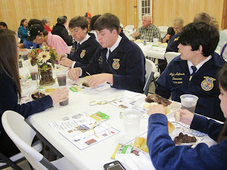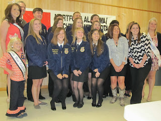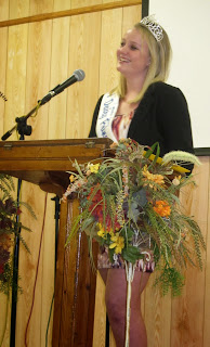Hartford FFA students and Miss and Little Miss Hartford pose with Peanut Butter and Milk Festival guests from Litchfield. |